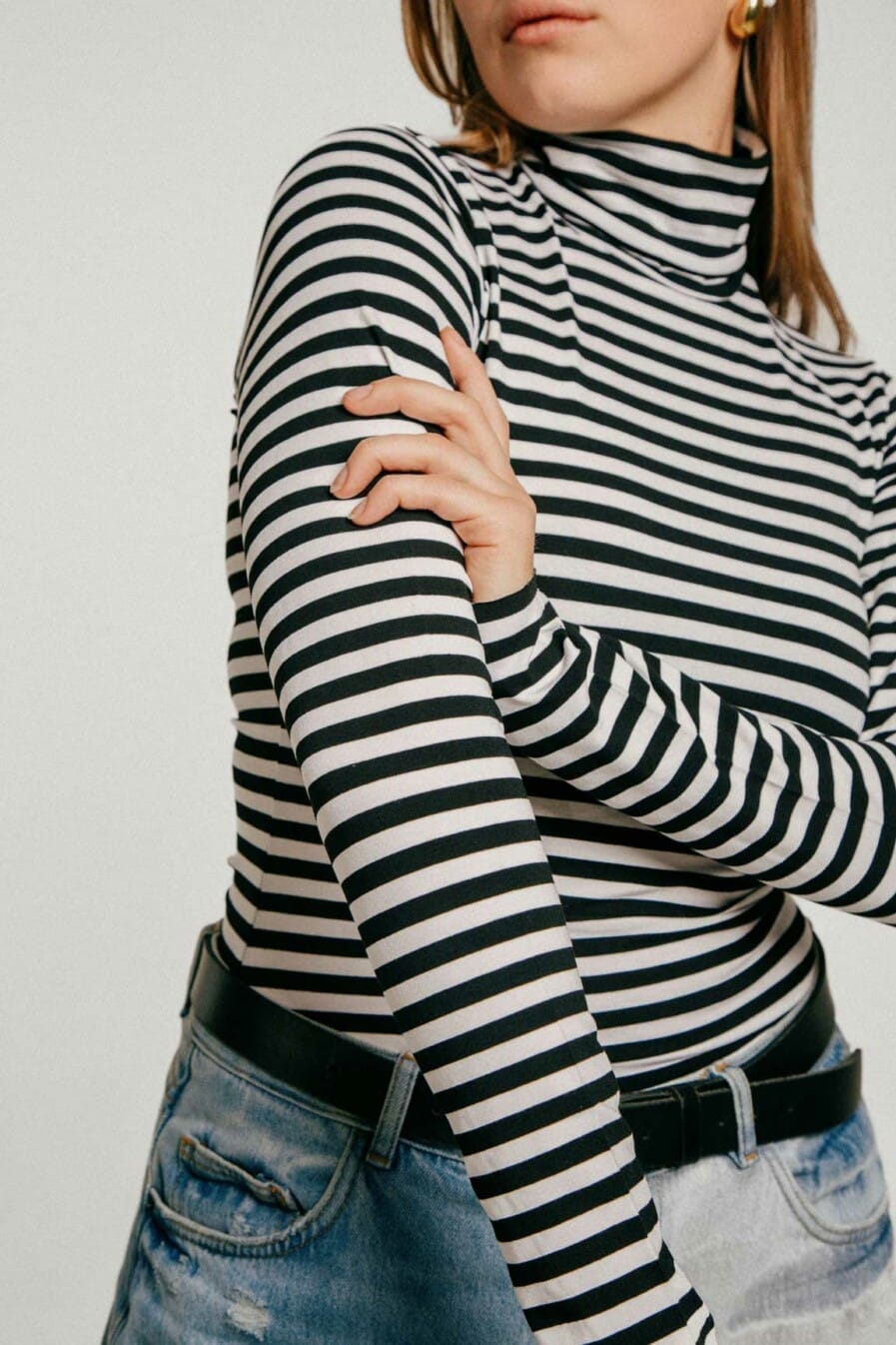 M50 plāns džemperis ar augstu apkakli | Strīpains