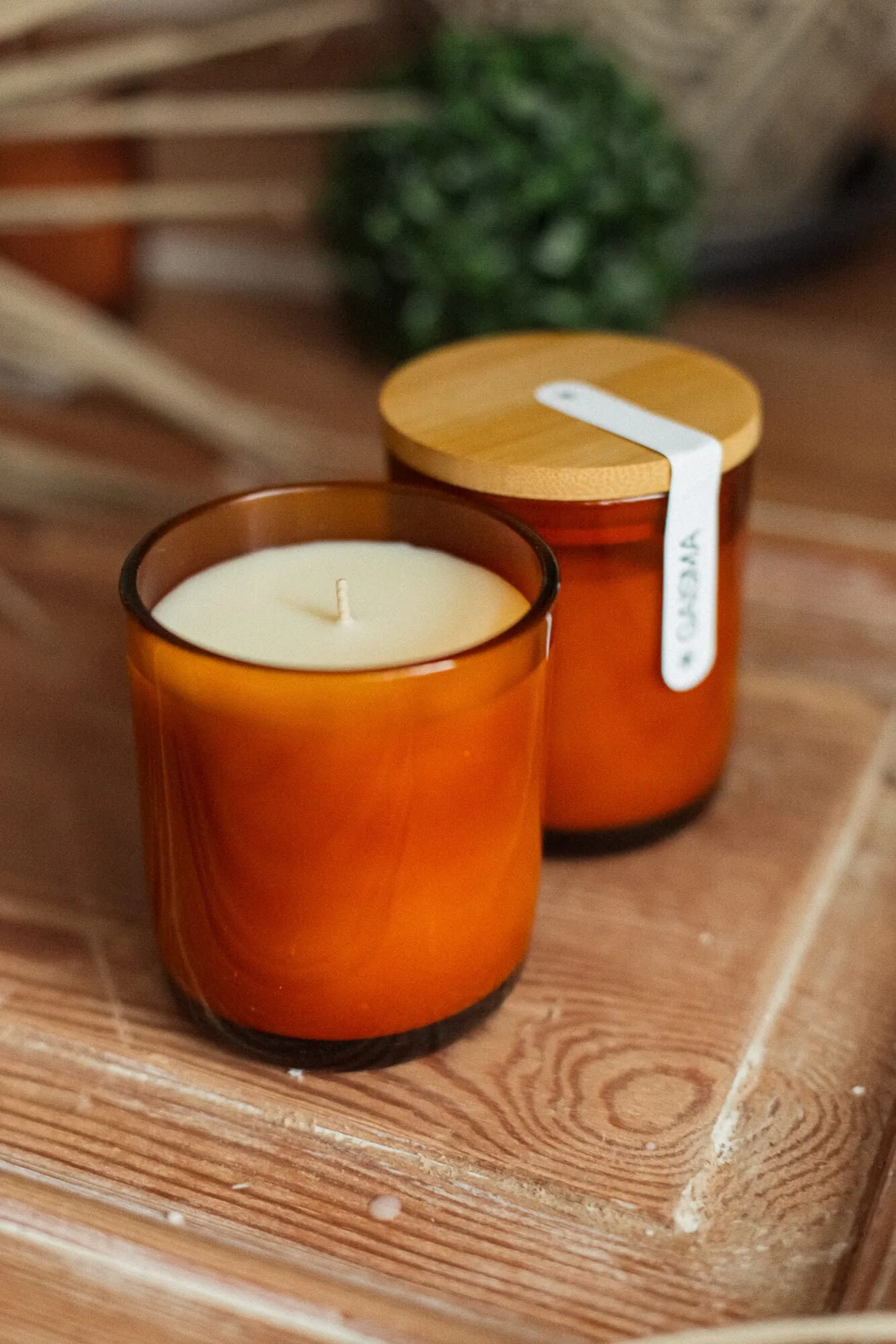Hand poured natural soy wax candle with a selected bouquet of long lasting aromas. Glass container with a wooden lid, wrapped in paper of our favourite prints to enrich the experience and add a visual dimension to this carefully crafted fragrance.